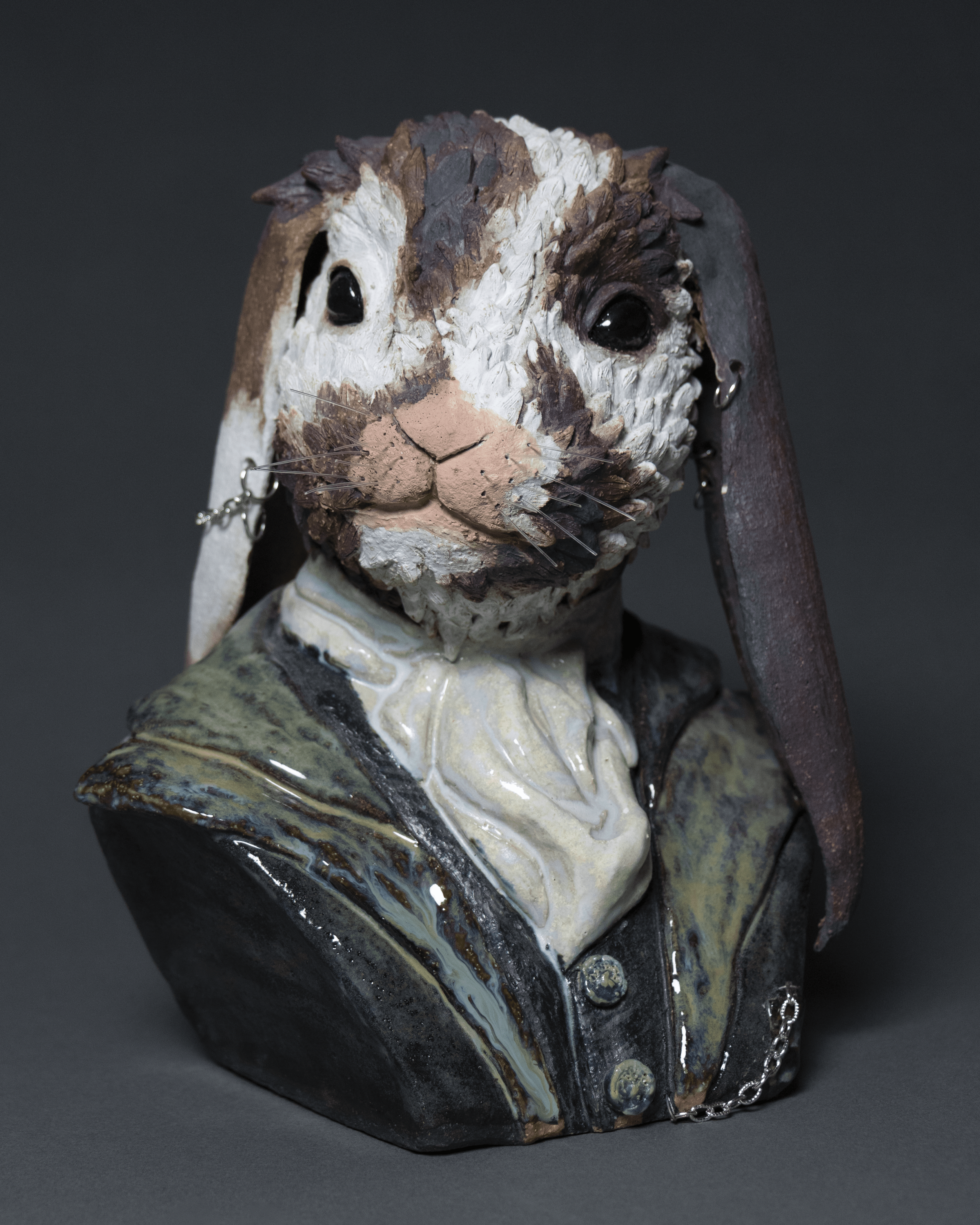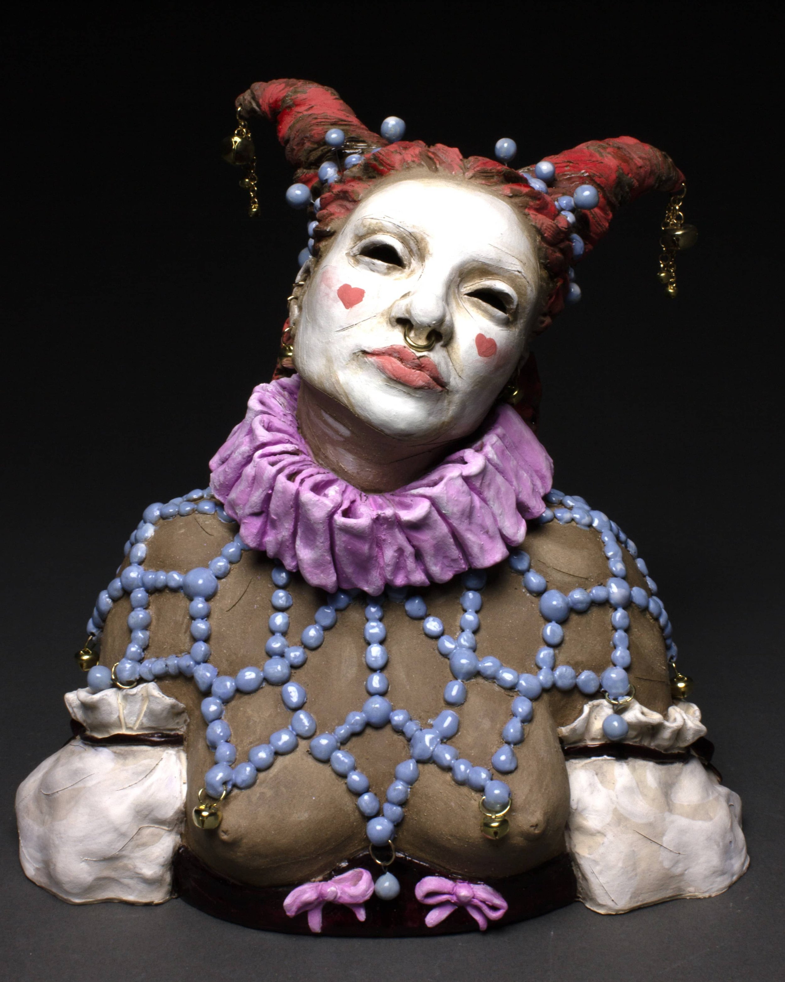 I explore elaborate costuming and otherworldly themes within figurative sculpture creating narratives echoing daydreams and larger than life imagination.
