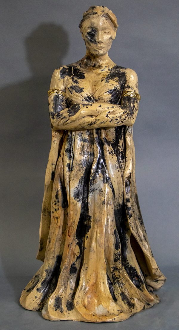 In a World of My Own, 2024. 20’’x8’’x8’’ Pit fired ceramic and gold leaf.