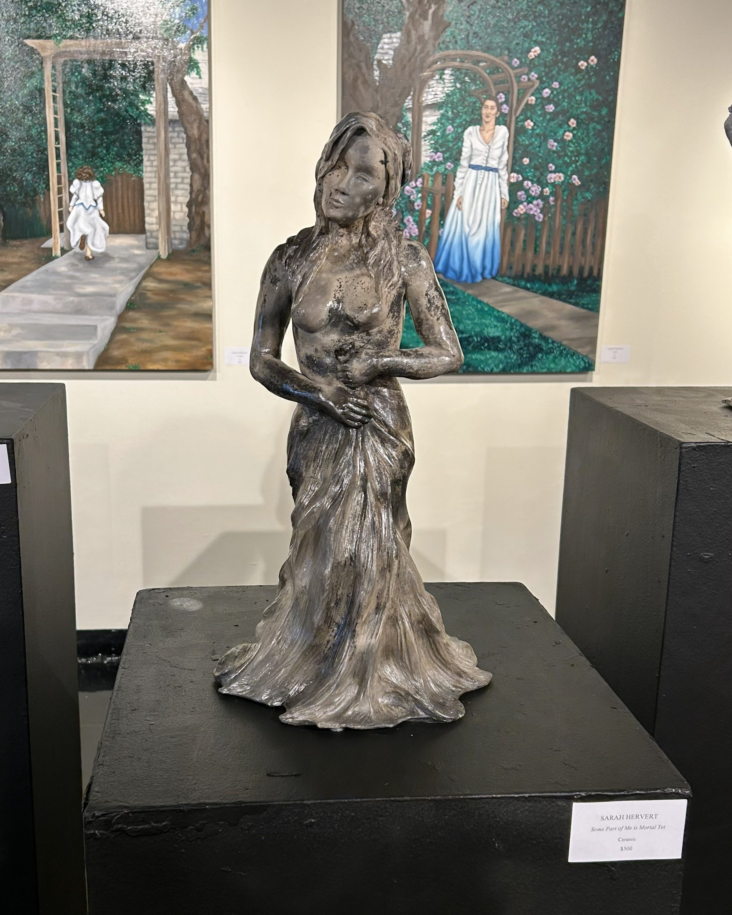 Daydreaming allowed me to explore friendship, connections between people, and space as if there were no obstacles or fences. My work explores the distance between imagined figures and landscapes and vice versa. Creating sculpture allows me to bring these figures to reality and explore how stories can connect people while I use painting to explore the spaces that inspire me. Today, I carry these journeys and dreams within me. This art allows me to look back at that little girl who was always searching for more to continue her adventures.